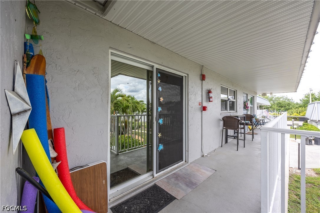 Inside, you’ll find all tile flooring throughout for easy maintenance and durability, along with a newer updated kitchen featuring stainless steel appliances, ample cabinetry, and a built-in wine fridge—perfect for entertaining or relaxing after a day enjoying the Southwest Florida lifestyle. A Murphy bed adds valuable flexibility for guests while maximizing living space. For added peace of mind, the property includes a transferable home warranty.