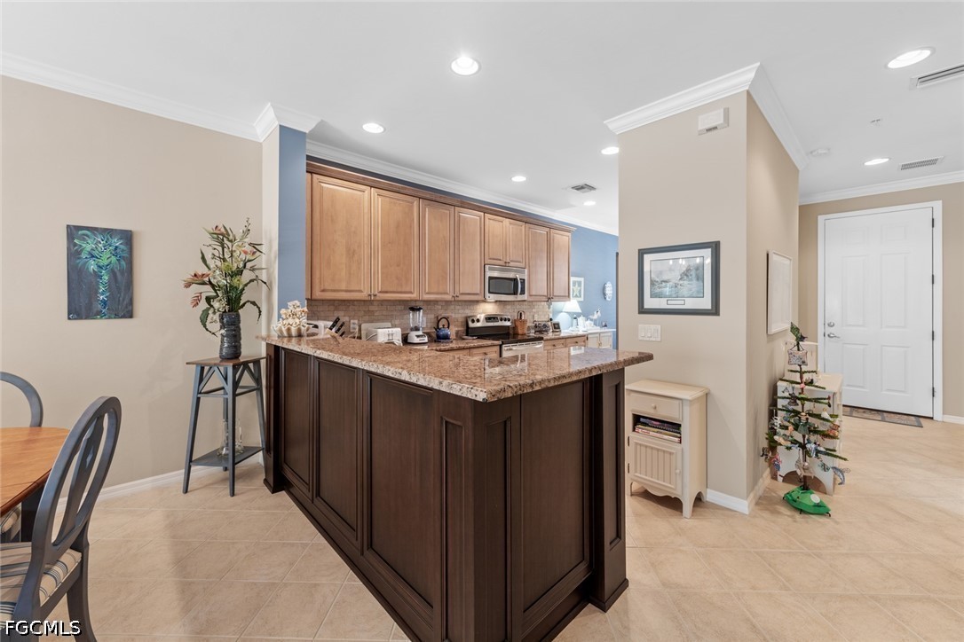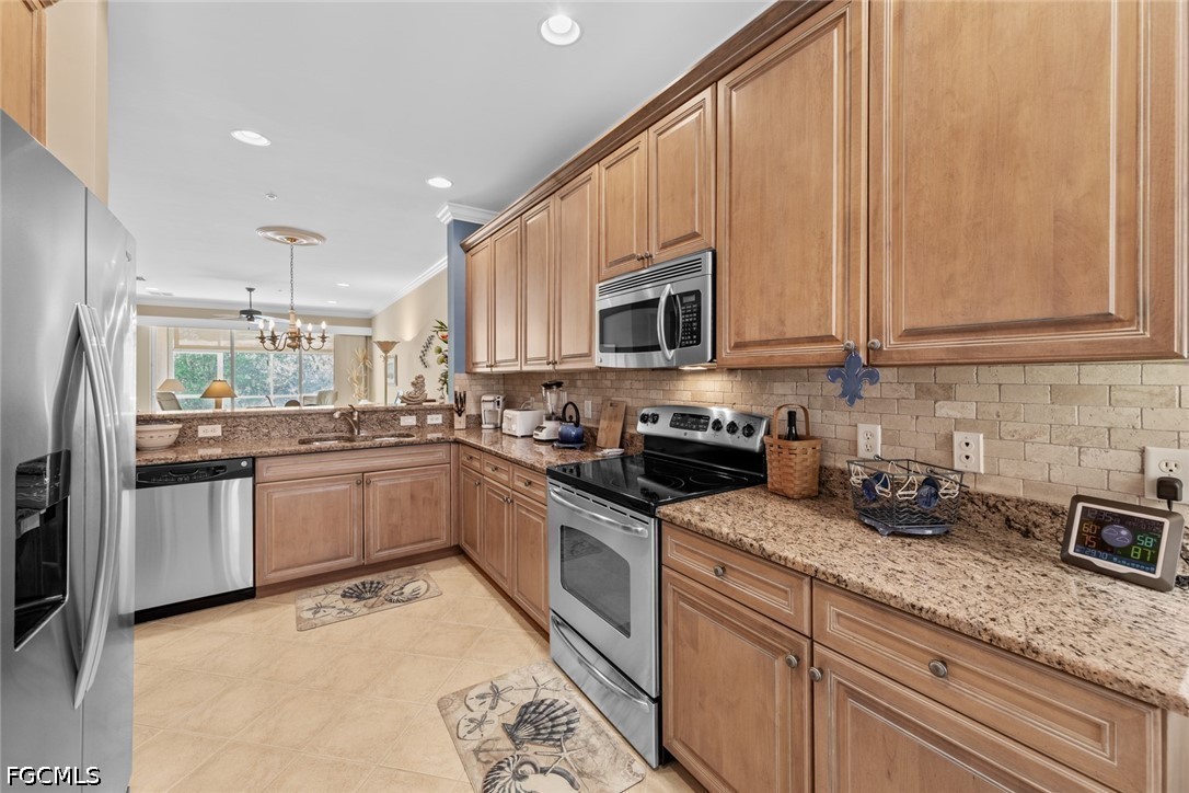 This exquisite ground level condominium features 2 bedrooms and a den, conveniently located off McGregor Blvd in close proximity to shopping, dining establishments, and the picturesque beaches of Southwest Florida. Situated within the Lucaya community, which is surrounded by a pristine nature preserve, residents enjoy resort-style amenities including two heated community pools, a fitness room, and a walking trail. The distinctive features of this home are sure to impress, furnished with impeccable designer touches and offered turnkey. The kitchen is equipped with stainless steel appliances, 42" wood cabinets, granite countertops, a tile backsplash, a kitchen nook, and a breakfast bar. The master bedroom boasts two spacious walk-in closets, a double vanity, and a shower. It also includes a Florida split spare bedroom and bath with both a shower and tub. Additionally, there is a separate full-size laundry room. The property includes a designated carport with extra parking, an additional storage unit, and a covered front porch for relaxation. The living area features diagonal tiles, carpeted bedrooms and den, with crown molding throughout. Enjoy serene mornings or evenings on your private-screened lanai upgraded with tile decking, which includes an electric hurricane screen, offering a peaceful view of the nature preserve. Come see this move in ready home. There was NO HURRICANE DAMAGE IN ANY OF THE DEVELOPMENT DURING THE RECENT STORMS.