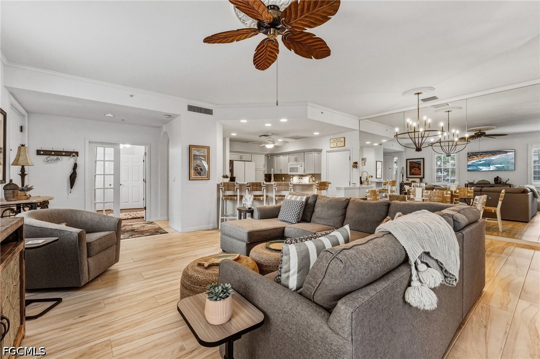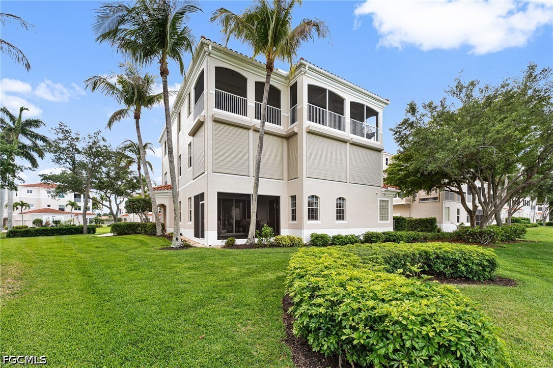 Nestled within the highly sought-after Harbour Links enclave of Gulf Harbour Yacht & Country Club, this beautifully maintained, move-in-ready residence offers an effortless blend of elegance and comfort—complemented by breathtaking sunset views each evening. Offered turnkey furnished and ideally positioned on the first floor, the home includes a private two-car garage just steps from the community pool. A gracious great room floor plan welcomes you in, flowing seamlessly to a screened lanai that captures sweeping lake and golf course vistas across the 10th fairway.