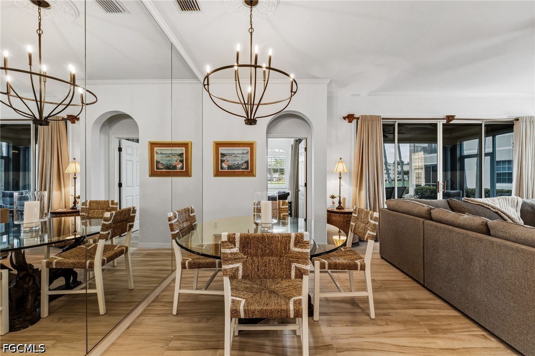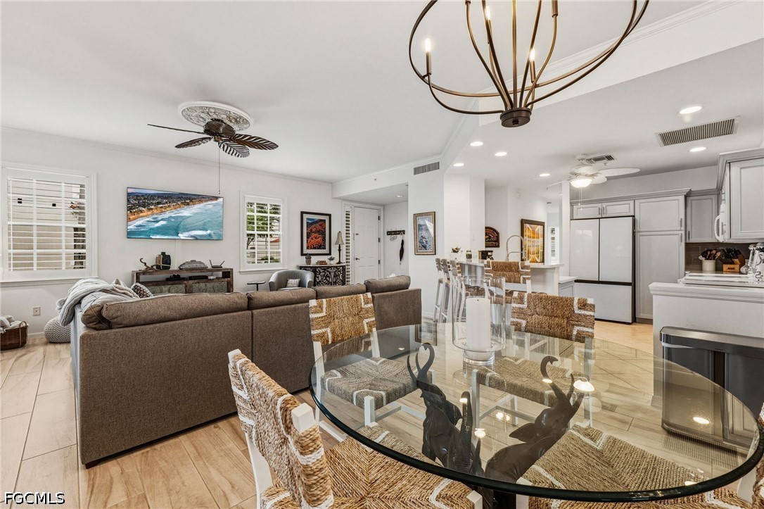 Further elevating the home are electric storm shutters, designer ceiling fans, extensive crown molding, and a two-car garage with built-in storage and a workbench. Optional private memberships are available, offering access to Gulf Harbour’s world-class amenities and an elevated lifestyle of leisure and luxury.