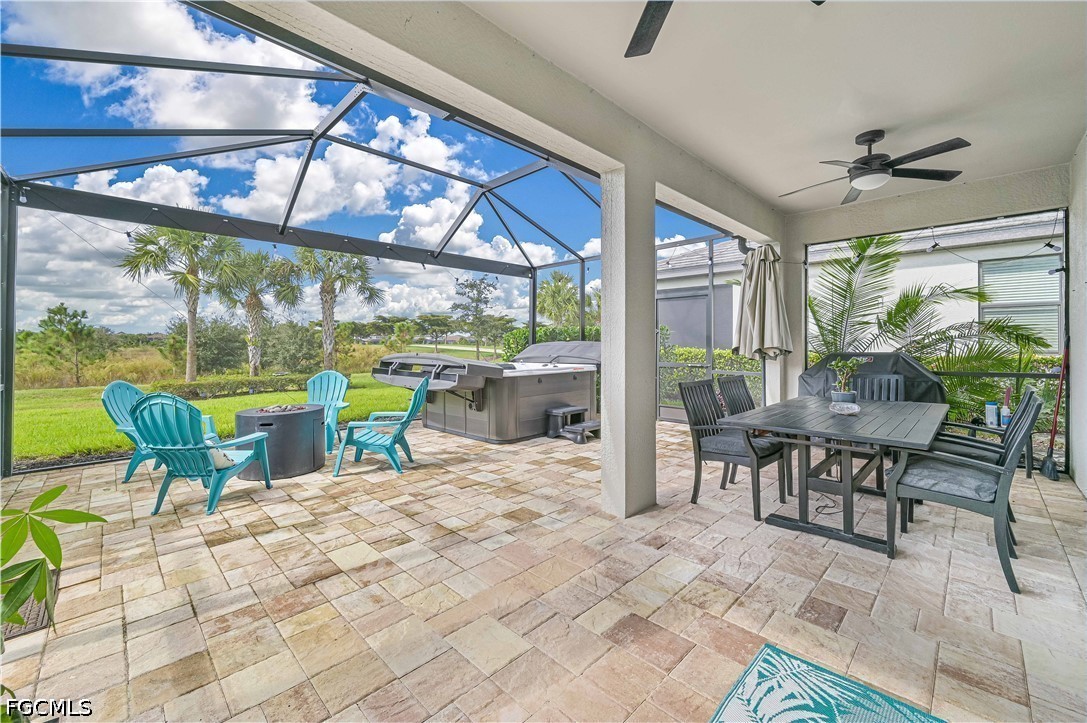 Step outside to your extended screened lanai with western exposure, where you can unwind in the hot tub while enjoying serene preserve views and stunning Southwest Florida sunsets—an ideal setting for relaxing or entertaining.