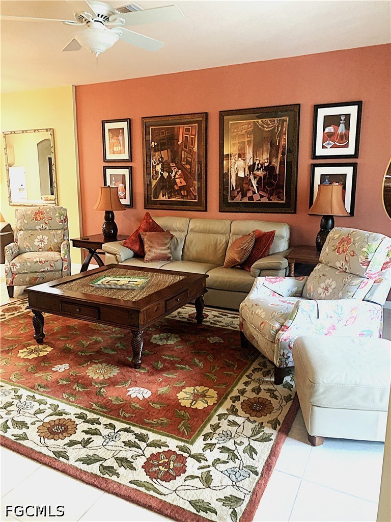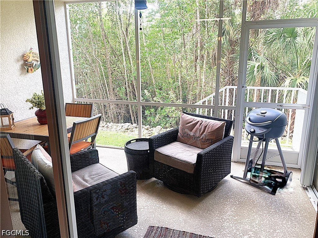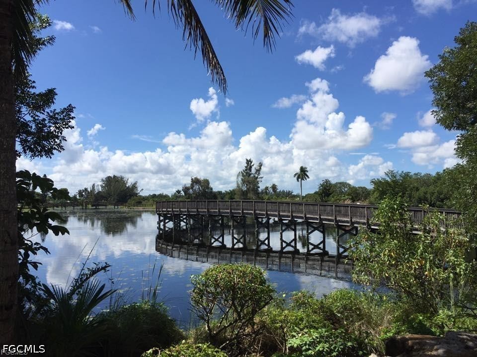 This custom, Coastal-designed condo is MOVE-IN READY! It is offered TurnKey so moving in is hassle-free. Reflection Key is a gated community with private access to Lakes Park. This is an ELEVATED FIRST FLOOR condo with over 1,500 sq ft, a locked exterior STORAGE ROOM, 2 Bed + Den & 2 full baths with tile flooring throughout and carpet in the bedrooms. The lovely Den with French doors is done in a stunning blue accent wall with leather recliners. The owners Suite offers a soaking tub, two vanities, step-in shower, private toilet, and walk-in closet. Privacy is provided by the SPLIT BEDROOM FLOOR PLAN and tropical landscape view from the elevated, screened lanai. Design decor items include decorative potted plants, pottery, mirrors, wall hangings, vases, platters and silk plants. The kitchen has glass backsplash, Corian counters, and working Island which makes for COMFORTABLE ENTERTAINING. There is PRIVATE ACCESS to the 279-acre LAKES REGIONAL PARK! You can ride or walk there to enjoy paved & limestone trails, boat rentals, bike rentals, raised garden beds and WEEKLY FARMERS MARKET during season. Or stay at home and enjoy Reflection Key’s active lifestyle with outstanding amenities, including:
