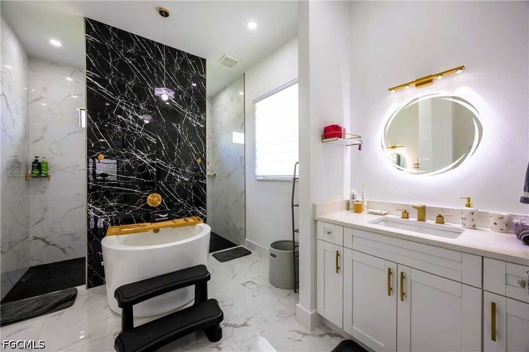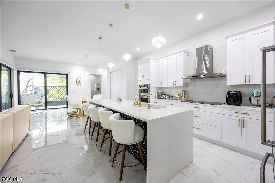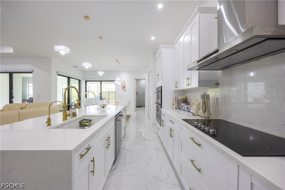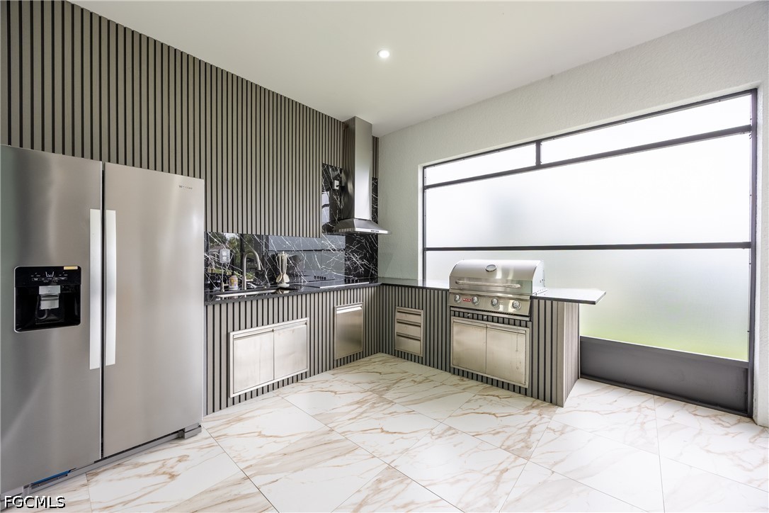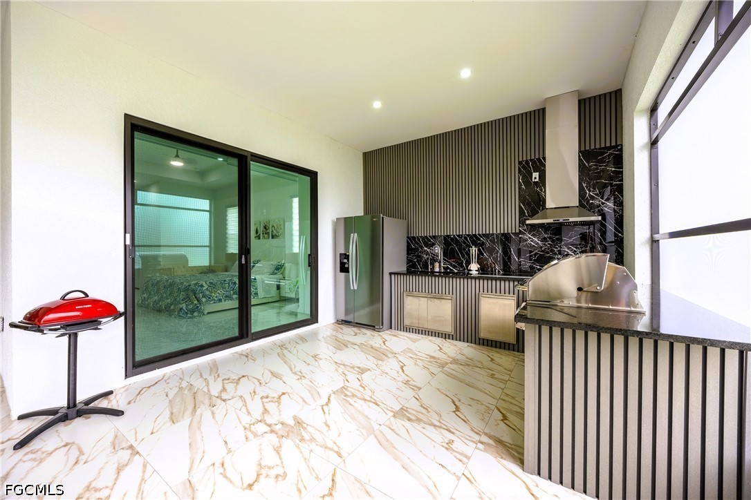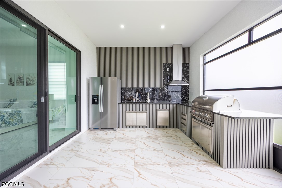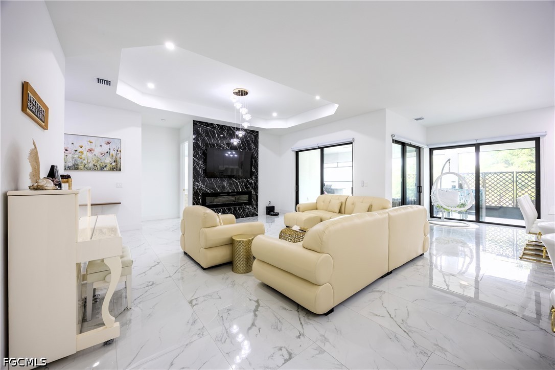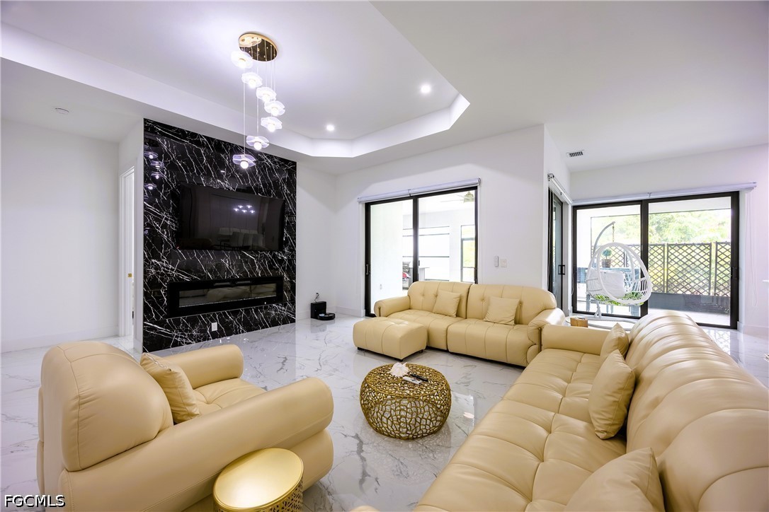4,105 SQFT total 2714 under air. Welcome to this spectacular, centrally located home nestled on a large corner lot. Situated just minutes away from schools, hospitals, shopping, and entertainment, this gorgeous, move-in-ready property offers the perfect blend of luxury, space, and convenience. No expense has been spared in creating this remarkable 4-bedroom + den, 4-bathroom home, providing an unparalleled living experience. From the moment you approach the front of the house, you'll be captivated by the manicured lawn and impressive impact French doors that stand 8 feet high and 6 feet wide. Step inside to find a cavernous living area filled with an abundance of natural light, thanks to impact windows throughout the home. High 10-foot tray ceilings add to the spacious, airy atmosphere. The home features stunning imported porcelain 24” x 48” tile floors, offering both beauty and durability. The chef-inspired kitchen is truly a dream, showcasing an oversized island with exquisite quartz countertops and a waterfall edge, paired with a quartz backsplash for a seamless design. Equipped with top-of-the-line stainless steel KitchenAid appliances, including double wall ovens, a French door refrigerator with drawers and an ice maker, and a generous pantry, this kitchen will inspire your culinary creativity. The exquisite lighting throughout enhances the home's refined aesthetic. The humongous master bedroom is a sanctuary, complete with a walk-in closet for him and her, offering an abundance of storage. The master bathroom is equally luxurious, with double sinks and matching quartz counters, complemented by backlit, changing-color mirrors that include a defogging feature. A jetted tub provides the perfect spot for relaxation, and the family-sized shower features multiple shower heads for a spa-like experience. Need extra space? The huge den with two windows is perfect for a home office, hobby room, playroom, or even a 5th bedroom. The laundry room is equipped with front-loading washer and dryer, cabinets, and a sink for added convenience. Very fancy out door kitchen already done, including brand name grill and electric stove and fan hood ideal for entertaining friends and family. The triple-car garage includes electric door openers and is finished with epoxy floors with metallic flakes for durability and style. This home is built on a stem wall foundation, ensuring no cracks and guaranteeing lasting quality. Second driveway to park your RV or BOAT. Over 10 popular varieties mango trees, longan tree, star apple tree, avocado tree, seedless guava tree, banana treasured wax jumbo tree planted. The house is fully furnished with new furniture, the furniture is priced separately. This unique gem offers everything you’ve been looking for in a home—luxury, space, and a prime location. It’s easy to show and will not last long! Don't miss out—schedule a tour today! PS Flood Zone X. No Flood Insurance required by a lender.