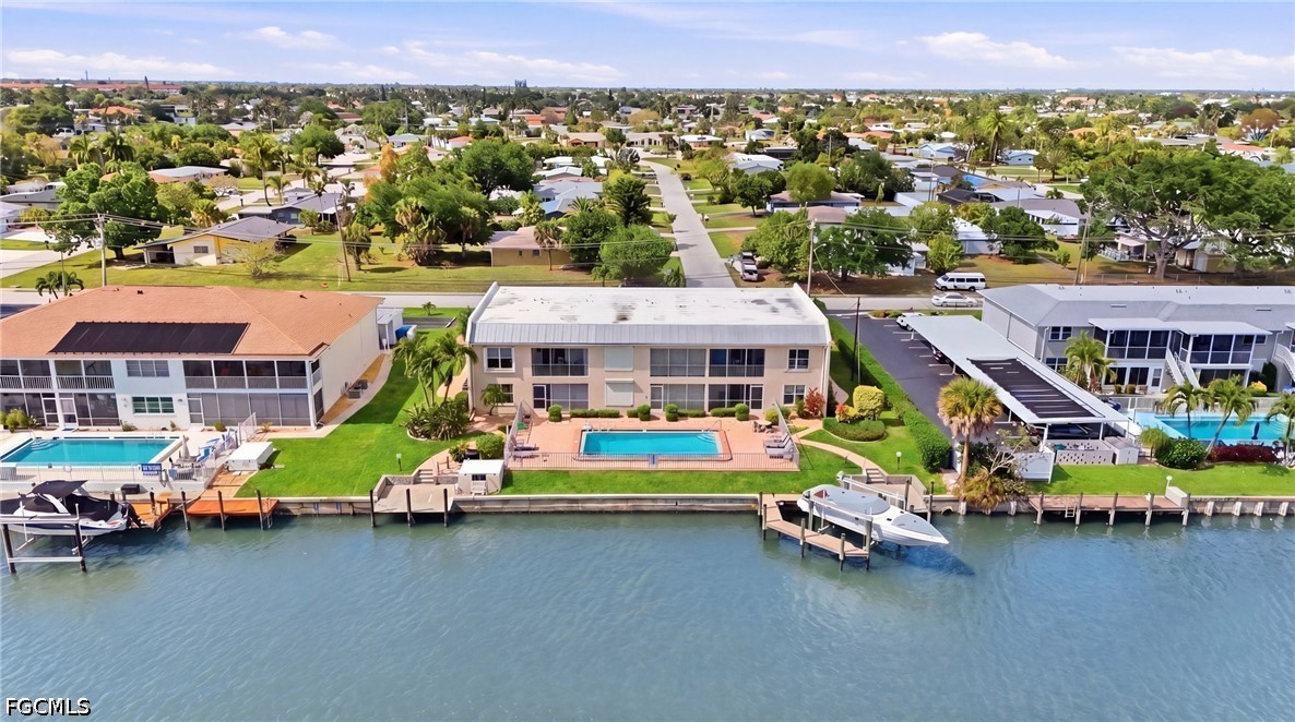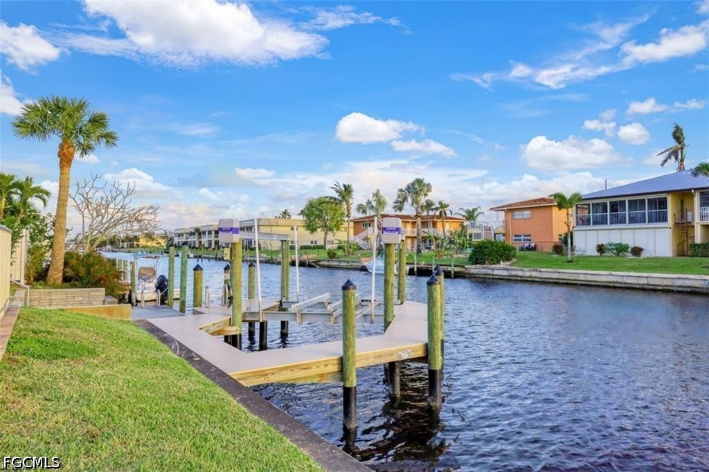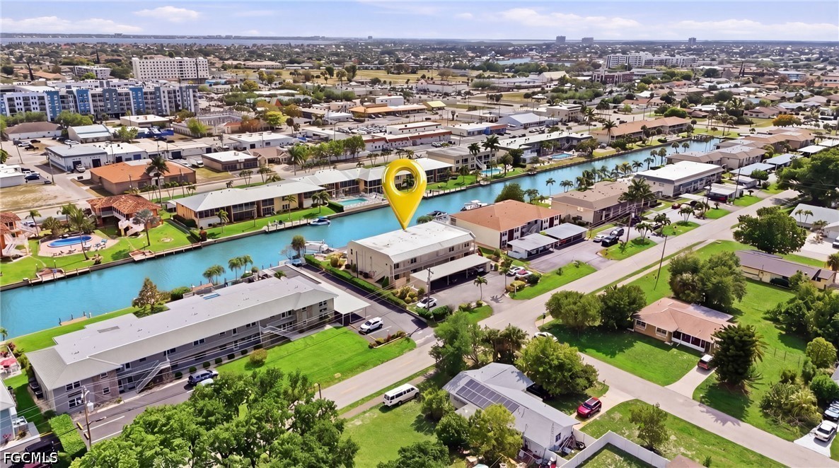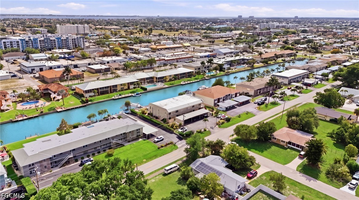 Sun-drenched, waterfront-inspired living meets the vibrant energy of Downtown Cape Coral in this exceptional corner end-unit—an offering that effortlessly blends coastal elegance, investment potential, and an unbeatable location. Perfectly positioned within an intimate, beautifully maintained community of just six residences, this turnkey furnished 2-bedroom, 2-bath condo delivers both privacy and convenience, making it an ideal full-time residence, seasonal retreat, or high-performing rental opportunity.
