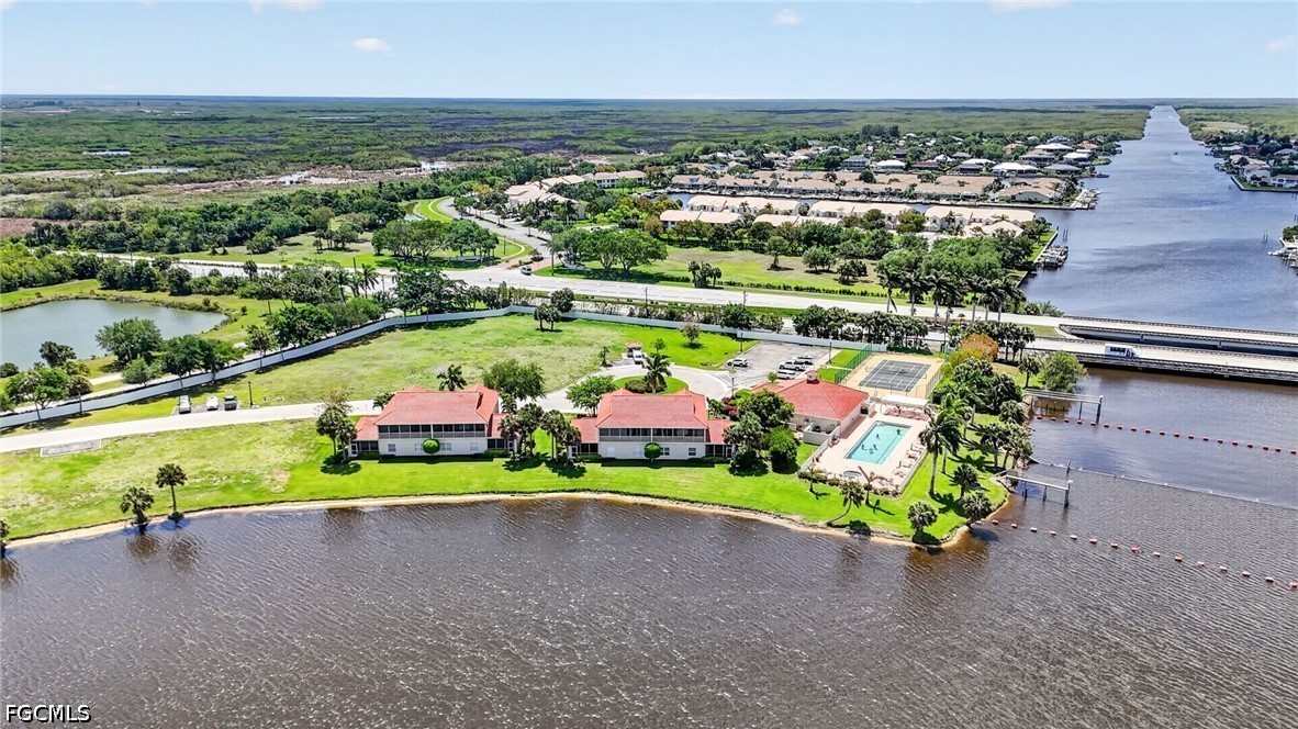 Beautiful 3 bedroom condo on a cul-de-sac overlooking incredible water views, across the street from the Ten Thousand Islands and the Florida Everglades and just minutes from Marco Island. This light and bright unit features high ceilings and an open living and dining area, creating an airy and inviting space. The kitchen offers ample cabinet storage, solid surface countertops, a built in pantry, and appliances including a smooth top stove, microwave, and dishwasher. The spacious primary suite includes a walk in closet, dual vanities with solid surface countertops and a tiled walk in shower. Two additional bedrooms provide flexibility for guest, family, or a home office. Additional highlights includes a deep one car garage with extra storage, plant ledges, recessed lighting, ceiling fans and zoned bedrooms for added privacy. Recent updates include a newer water heater and newer roof. Enjoy the large covered patio with second floor elevation offering stunning water views perfect for relaxing and entertaining. Community amenities include a pool and tennis court, all within short walking distance. Don't miss the opportunity to own a slice of paradise in a prime location!