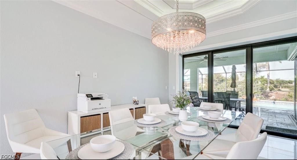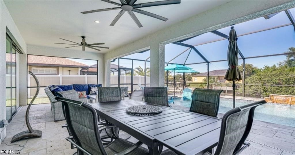 Waterfront Pool Home in SW Cape Coral – Bright, Stylish, and Built for Entertaining! Live the dream in this luxurious 3-bedroom + Den, 2.5 Bath waterfront home, perfectly situated near Surfside Blvd in the highly desirable Southwest Cape Coral. Spanning approximately 2,000 sq. ft., this impeccably designed residence features a sparkling saltwater pool, expansive travertine lanai, and breathtaking sunset views—ideal for relaxing or hosting unforgettable gatherings. Step inside to discover a bright and open layout filled with high-end designer touches, including 24” tile flooring, coffered and tray ceilings, and dramatic 8’ doors throughout. At the heart of the home, the stylish chef’s kitchen is a showstopper, featuring 42” custom cabinetry, sleek granite countertops, stainless steel appliances, and a spacious design that flows effortlessly into the great room—perfect for entertaining friends and family. Massive 90-degree sliding doors open fully to blend indoor and outdoor living, extending your living space onto the covered lanai. The primary suite is a luxurious retreat, complete with dual walk-in closets and a spa-inspired walk-in shower. Additional highlights include a durable tile roof, impact-resistant windows and doors, and superior craftsmanship throughout. Furnishings Negotiable! Don’t miss your chance to own this exceptional waterfront home—schedule your private showing today!