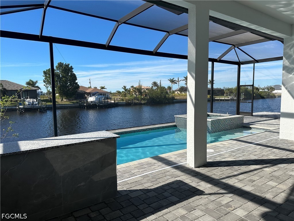 Direct Gulf access and breathtaking panoramic sunsets. Enjoy cooking and dining with the fully equipped outdoor kitchen or relax and unwind in the pool and spa. Continue to the backyard with fully screen enclosure, perfect for entertaining or simply relaxing while enjoying the gentle waterfront breeze and views over the tranquil waters. This exquisite 3,000+ square foot waterfront home boasts 3 spacious bedrooms plus a versatile den, 3 luxurious bathrooms, and an outdoor paradise, perfectly blending luxury, comfort, and outdoor living. As you enter, you’ll be captivated by the open floor plan and high ceilings, paired with the large impact windows and impact sliding glass doors that seamlessly blend indoor and outdoor living, filling the space with natural light and showcasing the picturesque waterfront views. The living area flows seamlessly into the gourmet kitchen, fully equipped with high-end appliances, quart countertops and a large island perfect for entertaining. The master suite is a sanctuary of comfort, with his and hers walk-in closets, and an en-suite bathroom featuring dual vanities, a soaking tub, and a walk-in shower. Two additional generously sized bedrooms share a well-appointed full bathroom, while the den provides a versatile space perfect for a home office, gym, or additional bedroom