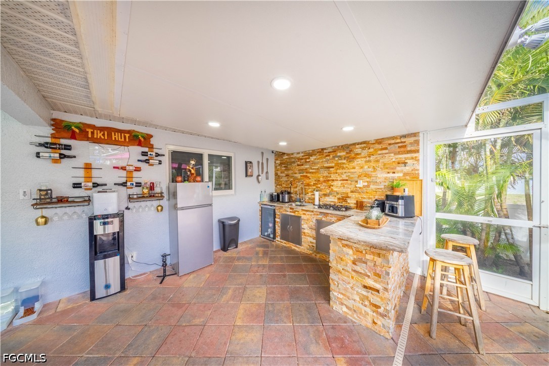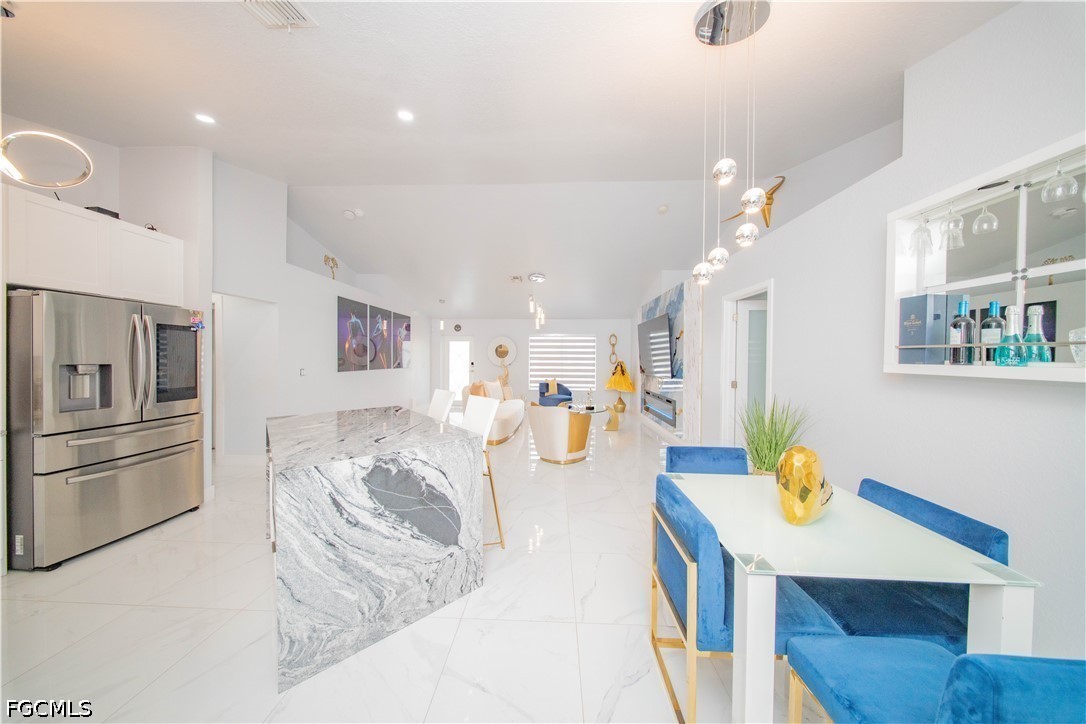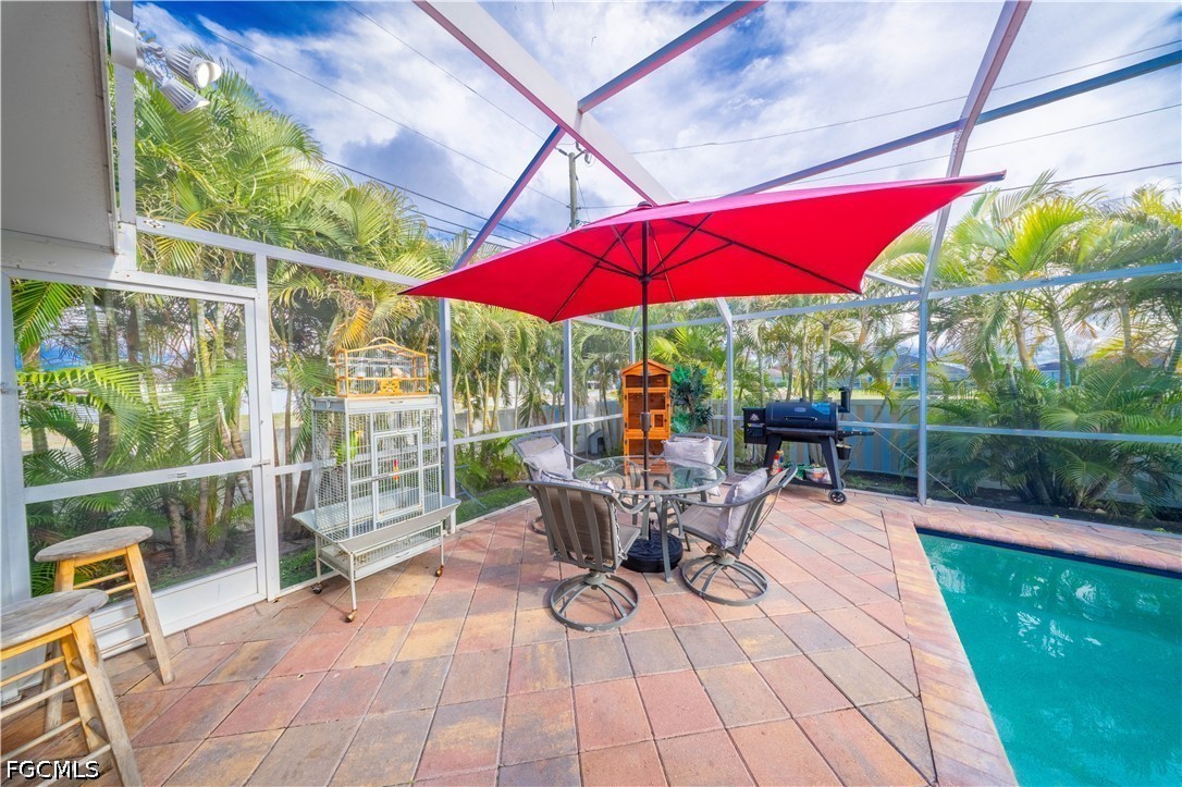 Located in Cape Coral, this impressive corner lot home, built in 2005, features fresh upgrades. Sitting on half an acre, it boasts a 2023 roof, 2023 AC, and a 2023 fence with a 22-foot remote-controlled gate. The screened lanai was updated in 2023, and the home offers a 2015 pool (25x12) with a 2015 heater. Inside, the home is fully remodeled with modern LED lighting, a fireplace, a completely renovated kitchen and bathrooms with smart toilets, and tile flooring throughout. The property is delivered with kitchen appliances except the dishwasher, as well as a washer and dryer. It has a security system with cameras and alarms connected to fire and police services. There’s also a 2019 shed (10x16), a 2022 summer kitchen, and a 2026 sprinkler system. The garage includes a mother-in-law suite ideal for rental income.