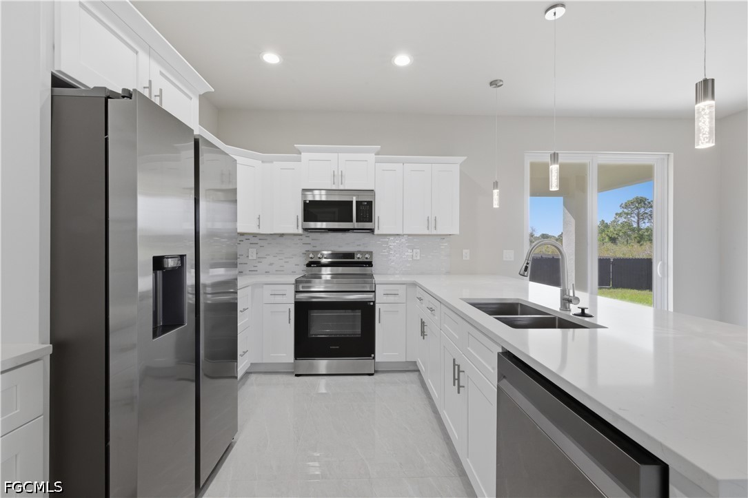 This one is a MUST see. This very unique property built on a half acre with 3bd, 2ba, 2car all fenced in plus a huge storage shed, boasts beautiful curb appeal, impact windows and doors, epoxy garage and lanai floors as well as paved driveway, tile throughout, granite counter tops, garage door opener, stainless steel appliances including washer and dryer and much more! You will love this luxurious modern home located in a quiet but yet close to main roads for easy access to schools, grocer stores and shopping centers.