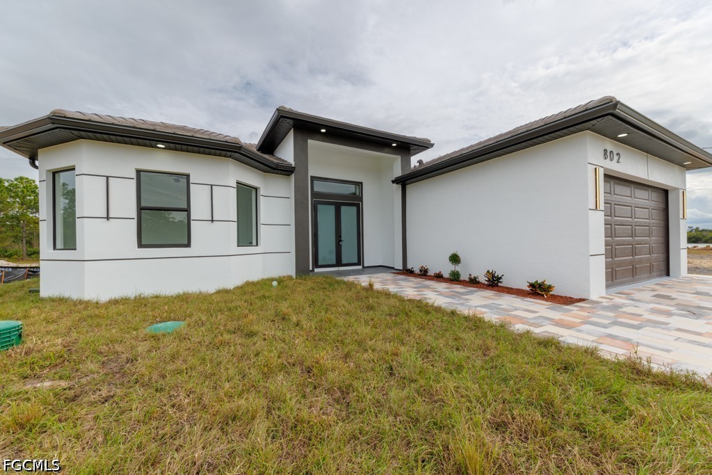Elegant new construction, 0.50 ACRE LOT featuring porcelain tile flooring throughout. Seller offering up to $15,000 toward buyer’s closing costs and prepaids with an acceptable offer. Enjoy impact resistant windows and doors,The kitchen and bathrooms are beautifully finished with quartz countertops and modern fixtures., a durable tile roof, and an elegant paver driveway that enhances the curb appeal. Located on a quiet dead-end street that offers privacy and tranquility.