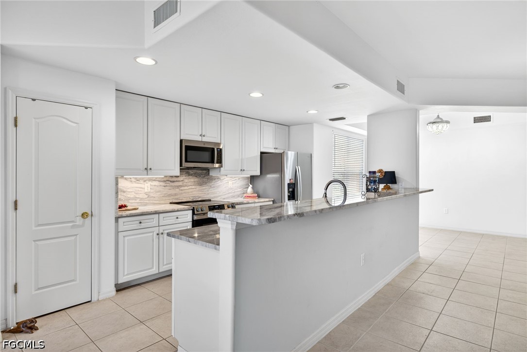 Popular first-floor corner home offering waterfront serenity in a 2 bed + den, 2 bath, 2 car garage carriage home located in the beautifully maintained, pet-friendly gated community of Moody River Estates. This spacious Arlington floor plan features a spacious layout with stylish tile and laminate flooring throughout, along with updated granite kitchen countertops and a modern backsplash. The two-car garage is equipped with a 240V outlet ideal for plug-in hybrid or electric vehicle charging. Enjoy added value and peace of mind with newer kitchen appliances and a newer A/C system. Association fees include an impressive array of services: cable, insurance, internet/Wi-Fi, irrigation water, lawn and land maintenance, legal and accounting, on-site management, exterior and interior pest control, reserves, street lighting, trash removal, and water. Residents of Moody River Estates enjoy resort-style amenities, including a community room, fitness center, two swimming pools, billiards room, playground, basketball and tennis courts, and a Gulf-access boat ramp. Stroll or bike along scenic paths, or participate in a variety of engaging community activities. Ideally located near shopping and fine dining, and just minutes from downtown Fort Myers, residents can also take advantage of the free seasonal trolley to explore over 60 shops and restaurants. Don’t miss this incredible opportunity—schedule your showing today!