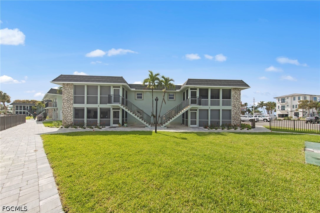 Ft. Myers Beach “Toes in the Water” at the Gulf of Mexico offers deeded beach access and is just minutes from Times Square and all the fun, including Margaritaville and the Diamond Head Hotel. Enjoy crystal white sand every day, with sunrise and sunset beach walks just steps from your front door. This ideal 2/2 features each bedroom with its own bath, the 2nd bedroom has a murphy bed and storage too, perfect for annual or seasonal rental, with the option to rent 12 times a year for 30 days each. Located on the second floor with no flooding, it boasts a large screened porch with a storage closet for bikes and beach gear, plus plenty of parking for you and a guest. The kitchen has plenty of counter space, new refrigerator and pass through to dining room. Accordion Shutters are included, and fees cover building insurance, water/sewer, trash, pool, and shuffleboard. Don’t forget to take the virtual tour to see the location. Pet Friendly, make this your new residence or the perfect investment property. There was no flooding in this unit.